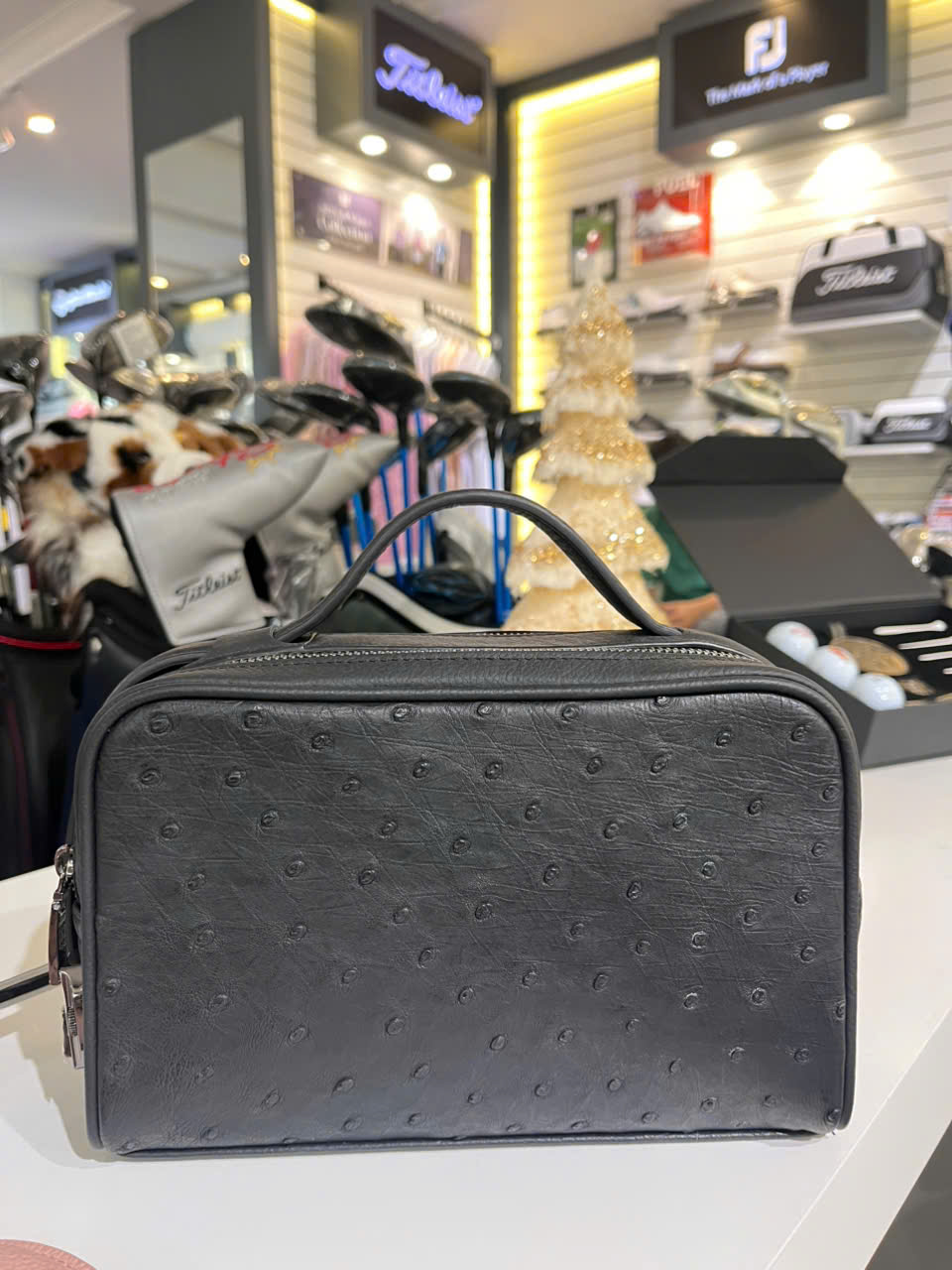 Túi Cầm Tay Da Mix Đà Điểu GLSX Đen quai 2 chiều LMT